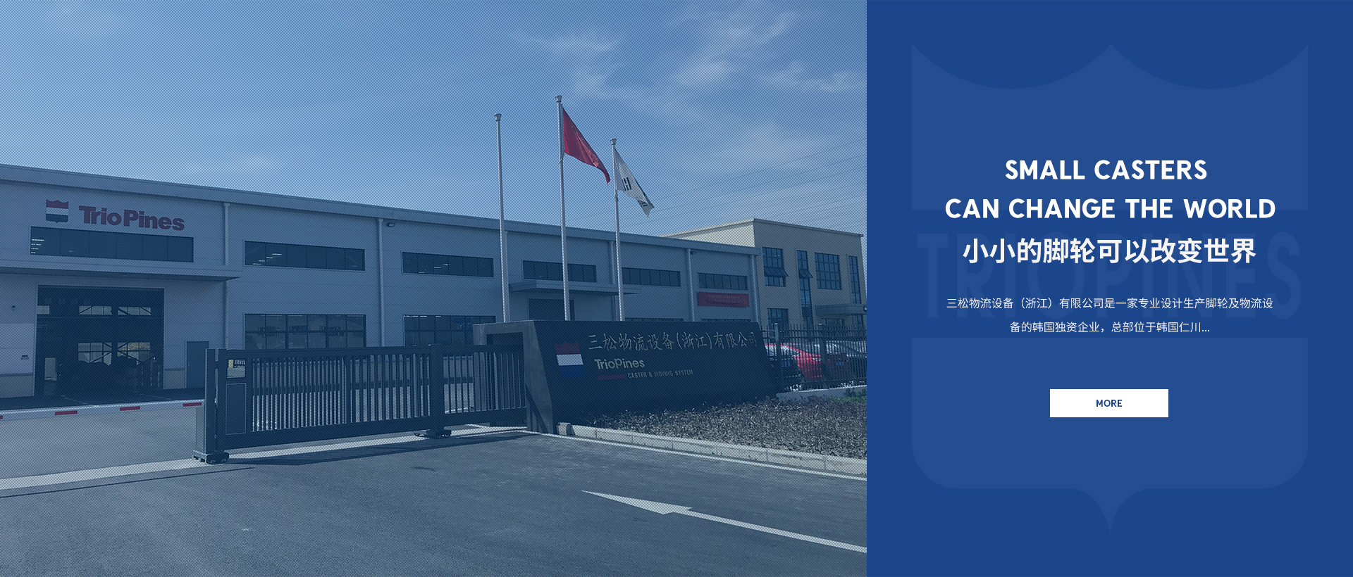 三松物流設備(浙江)有限公司是一家專業設計生產腳輪及物流設備的韓國獨資企業,總部位于韓國仁川,已有36年的腳輪生產歷史,在美國擁有4家銷售公司。目前已生產出20多種系類,一千多種不同規格的腳輪產品。